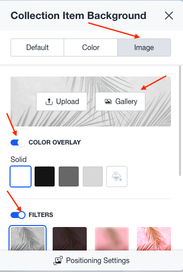 If you want to change the background, you will need to click on the 'Paint' button and choose a colour or image. When choosing an image, you will be able to use filters or colour overlay.