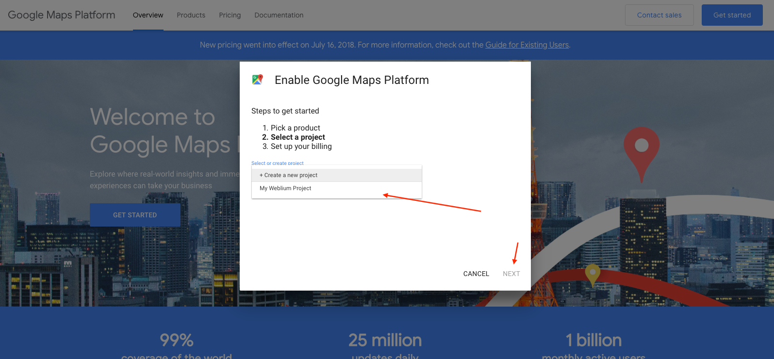 1. Чтобы получить ключ, надо авторизоваться здесь - https://cloud.google.com/maps-platform/.